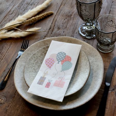 Til mere uformelle lejligheder tilbyder vi et stort udvalg af papirservietter i fine designs, mønstre og farver. Uanset om du dækker op til en hyggelig hverdagsmiddag eller en festlig begivenhed, finder du servietter, der skaber en smuk og indbydende atmosfære.